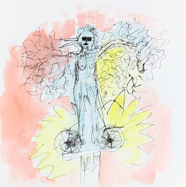 Grand Salute, ink and watercolour on paper25.4 x 25.4 cm, 2018